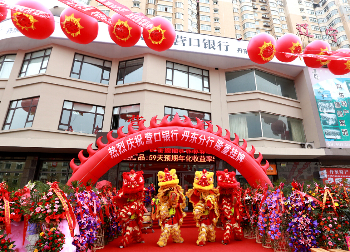 2014年11月27日,丹東市振興區(qū)錦山大街彩幔飛舞,裝飾一新的營口銀行丹東分行門前鑼鼓喧天,雄獅勁舞,賓客盈門。在一片熱烈祥和的氛圍中,營口銀行丹東分行開業(yè)儀式隆重舉行。丹東分行是營口銀行設(shè)立的第八家分行,是遼寧沿海經(jīng)濟(jì)帶金融合作的又一成果。營口、丹東兩地相關(guān)部門領(lǐng)導(dǎo)、營口銀行相關(guān)人員與企業(yè)客戶代表、新聞媒體等共計(jì)200余人參加了開業(yè)儀式。